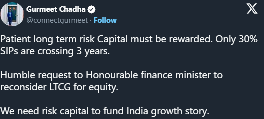 The core issue is a simple plea: please don’t penalize patience. Gurmeet Chadha, a respected fund manager, recently shared a startling fact that highlights the problem: only 3 out of every 10 Systematic Investment Plans (SIPs) in India manage to cross the three-year mark. If you wants to know about other incoming IPO of India you should go through it .In a country dreaming of an economic boom fueled by its own people’s savings, that’s a worrying sign. His “humble request” to Finance Minister Nirmala Sitharaman is to take another look at the Long-Term Capital Gains (LTCG) tax, because patient, long-term risk capital needs to be rewarded, not taxed heavily.